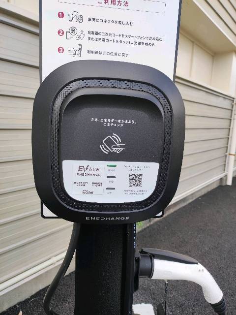 • 駐車場入ってすぐのところにエネチェンジ充電機(タイプ1)が1台設置されています。 充電中の駐車場が無料なのはありがたいですが、たどり着くまでの道がすごく狭いので、全幅1900mm超えの車種だとかなり気を使いそうでした。
