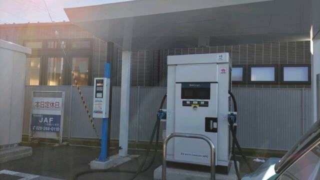 • R6上り側のBYD AUTO 水戸に設置されてます急速充電器です。隣接するファミリーマートからでも入れる位置にあります。