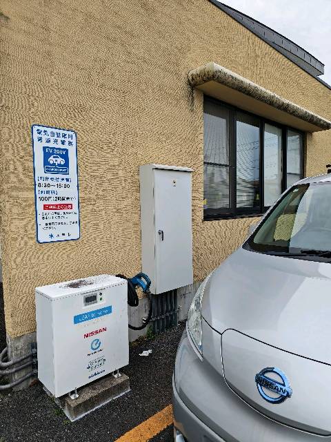 | 利用可能時間 | 平日8:30~15:00 土曜利用不可 日曜利用不可 祝祭日利用不可 土曜・日曜定休、祝日休み 設置されている充電器はLEAF to Homeです。 要受付。 窓口で利用の申請をし、料金をお支払いして使用。 利用後はカギを返却する。 充電2時間まで。 |