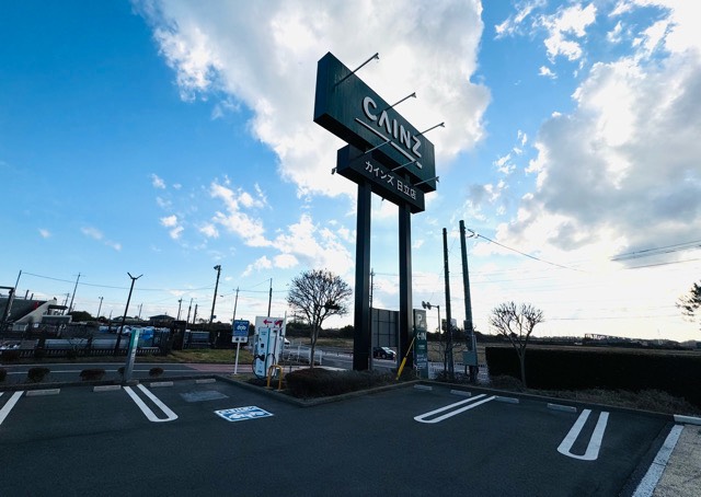 DAIHEN Corporation製50kW器です。オートアールズ、ベイシアと共用してる駐車場で、R293左折入場し左側のCAINZの大きな看板下に設置されてます。