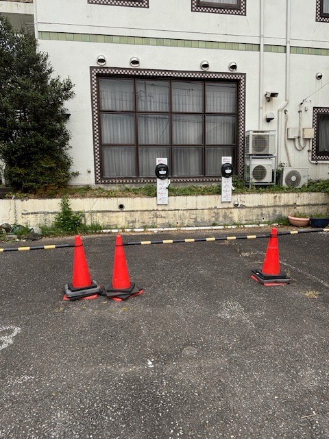 ホテル駐車場に4基設置されています。 フロント近くの枠に設置されているのが良心的です。 目の前にお風呂があり、日帰り入浴が10:00-21:00で営業していますので、充電中にお風呂も良さそうです