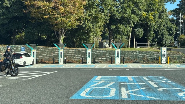 いつも思うけど、これからの世の中、電気自動車が増えたら、サービスエリアには、充電器が2.3台あると良いなって…あとは待機エリアも設けてもらって… 車椅子のエリアみたいに屋根もつけてもらって…