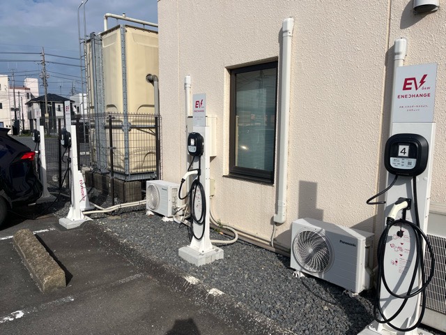 24時間利用可能との情報でしたので、深夜に伺ったところ、最初は設置場所がなかなか見つかりませんでしたが、普通の2階建て民家の1階部分の駐車場の奥に設置されていました。駐車スペースにはテスラとリーフが停まっており、充電のための充電スペースは空いていませんでしたので、今回は諦めました。テスラとリーフ両車とも充電器は使用していなかったため、駐車スペースが空いていれば使用出来そうですが、通り掛かりで使うのはチョット勇気がいります。
