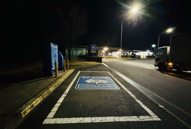 ニチコン製150kWマルチ×4器と(株)東光高岳製150kW×2口器です。PA入りすぐ左側に設置されています。高出力車は守谷や友部よりこちらが良いですね。