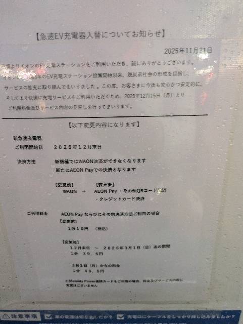 運用開始は12/15朝からの様です 利用料金は段階的に上がります e-mobilityのマークもあったので 使えるかと思います 個人的には普通充電器複数台置いた方が 嬉しいのですがねぇ