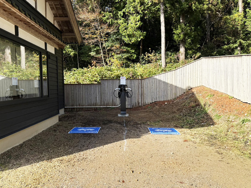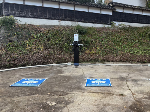 設置場所:施設の門を正面にみて左側の建物下と、施設向かい側にある駐車場の右側にある屋根の下にEV充電器があります。 最大出力6kW