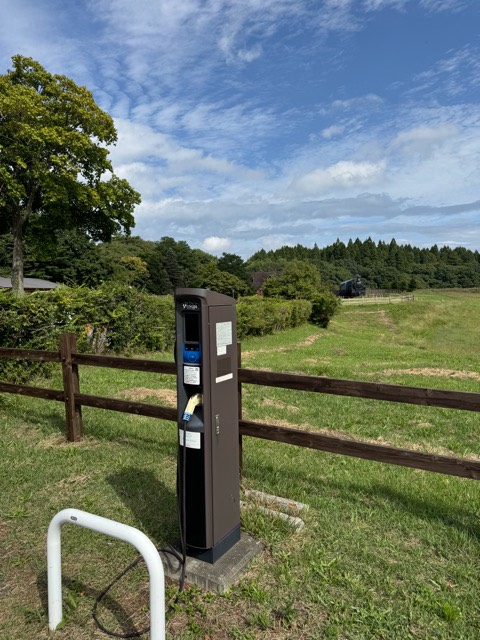 施設営業時間内で利用可能なNCS準拠の普通充電器が1基設置されています。 場所は小岩井牧場 駐車場内ですが、一般車用ではなくてバス、タクシー専用のところにあります。 なのてま、場内に入ると一般車は左折するように看板がでてますが無視して「大型バス・マイクロ・タクシー」の方向へ進んでください。 充電時間は無制限。鍵を借りて開けてもらう必要はありませんでした。