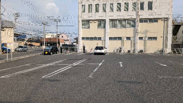 本庁舎横の小道を挟んで反対側の駐車場(百十四銀行の裏側)にあります。 駐車場は広くゆったりとしていて使いやすいです。