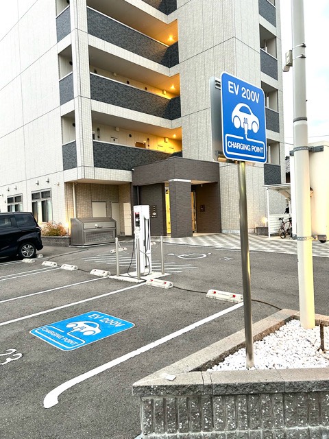 5階建てマンション?の一角に設置されています。 R11から近い位置で飲食店も複数有るので、「食事のついでに充電」しやすいと思います。 また「充電が終わったら充電用駐車スペースからすぐに移動して」と施設管理者さんからのお願いが掲示して有りました。 24時間利用出来る有り難い充電設備です。 多くの方が利用出来るように譲り合いましょう!