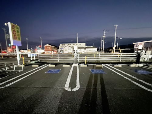 スーパー店舗正面の遠い側にあります。 駐車場が広くて4台もあり利用しやすいです。