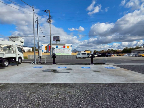 敷地が広いお店です。充電器は大屋根付き駐車場の中央にありました。お店の人によると利用は結構あるそうです。