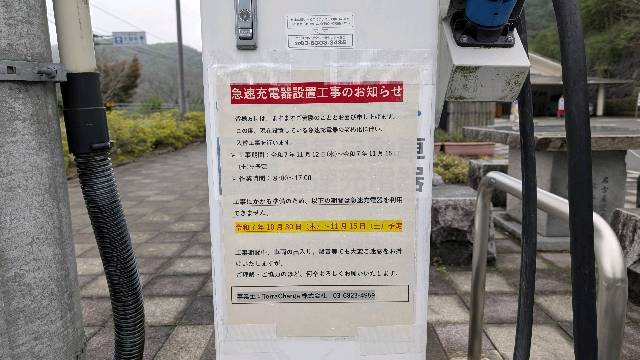写真がすべてを示す通り、駐車場の中で売店に一番近いところに充電ステーションがあるため、横向きの不法駐車の横にさらにいつも非充電車が停まっている状態となっています。土日はほぼふさがれています。ただホースは長くて、石造りのピクニックテーブルの横に縦に駐車してもとどきます。 峠道の手前にあるために、バイク族が多くたまり場になっていることもあって、売店の営業時間中以外は治安がよくなくて観光でやってきた際に女性やそのグループが充電するのはお勧めできません。大量のバイクとその一部がピクニックテーブルにたむろするすぐ横で充電することになります。すいていていつも使えますがそれが難点です。場所を移動してほしいと思います。機器自体は液晶も濃くて古くはありません。