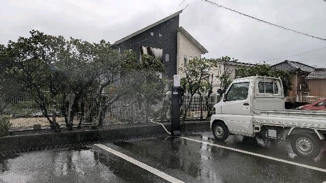 敷地に入って、奥の駐車場に入る前の左側に設置されています。