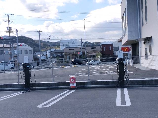東かがわ市西側駐車場に4基、小さな表示板だけなのでガソリン車が停める可能性あり