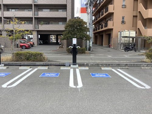 11号大通り側の正面に看板がありますが、正面から入るのではなく、ディーラー西側の信号から裏(南側)に回る必要があります。充電器の駐車場は狭くて大型車は入れにくいです。
