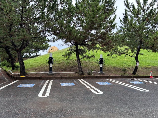 Zerovo Technologies製ENECHANGE 6kW器です。ホテル裏手から駐車場へ入りすぐ右手に設置されてます。 〈2025年5月から多少使い方が変わりました〉 宿泊者:ホテルサイトから充電器予約 宿泊者以外:ホテルに電話し予約有無確認。予約ない時に使用可能。使用の場合は受付で名前、ナンバー、携帯電話番号(連絡先)、使用時間等を申告します。