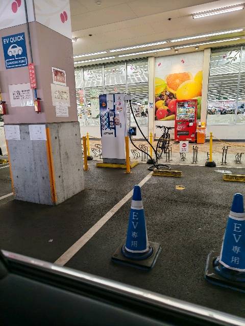 年中無休 充電30分まで。 設置場所:スーパー前の共用駐車場 1Fにスーパーsanwa、2Fにケーズデンキの入っているビルです。