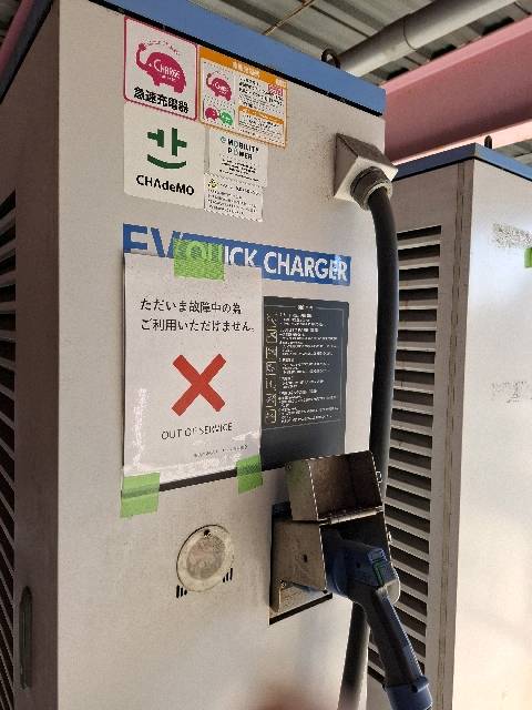 (株)東光高岳製150kW器です。販社敷地入り左手奥に設置されてます。充電器は最近新調され「調整中」の張り紙があり、2025/12/20時点稼働してないとのことでした。