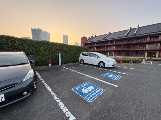 パナソニック製無料充電器です。駐車料金1時間500円なので、赤レンガで遊ぶついでに充電できます。