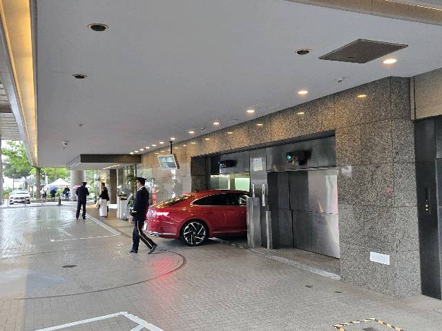 ホテル地下駐車場ですが車両をエレベーターで下ろして地下で自走する希少な駐車場です笑