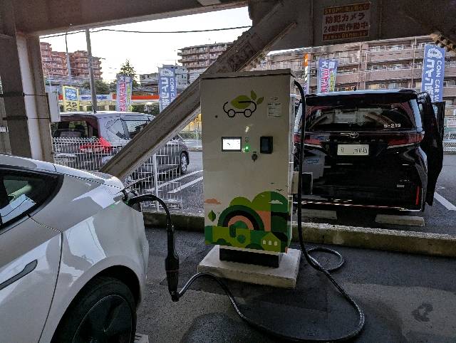 祝祭日9:00~22:00充電1回60分まで。 お問い合わせはGREEN CHARGE「050-5527-9808」へ こちらのURLから満空情報とkWhあたりの単価をご確認いただけます。 https://ev-charger-mgmt.pa-tms.com/BrandChoice?brand=EVChargingGreenCharge&brandID=6&displayFlag=1