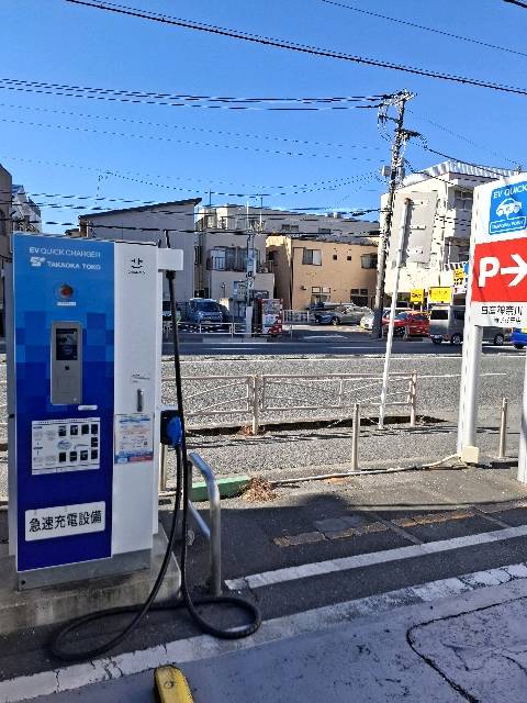 タクシーアプリ「GO」が提供するGO Charge認証ニチコン製100kW急速充電器×2口器です。従量課金制でライト89.99円/kWh(基本料金無し)、スタンダード44円/kWh(基本料金4180円)とのこと。eMPネットワークも充電出来る「拡張プラン」もあります。店舗近くに設置されてます。