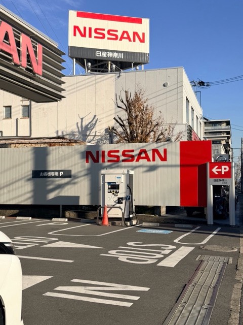 APITAの向かい側にあって利便性高いです。ニッサンディーラーの充電器は道路から見えるところなのでわかりやすくていいですね。