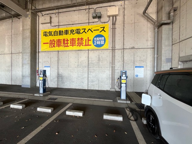 年中無休 設置場所:4階駐車場 充電終了後は速やかにお車の移動をお願いいたします。 充電2時間まで。 サービスカウンターにて料金をお支払いの上利用する。