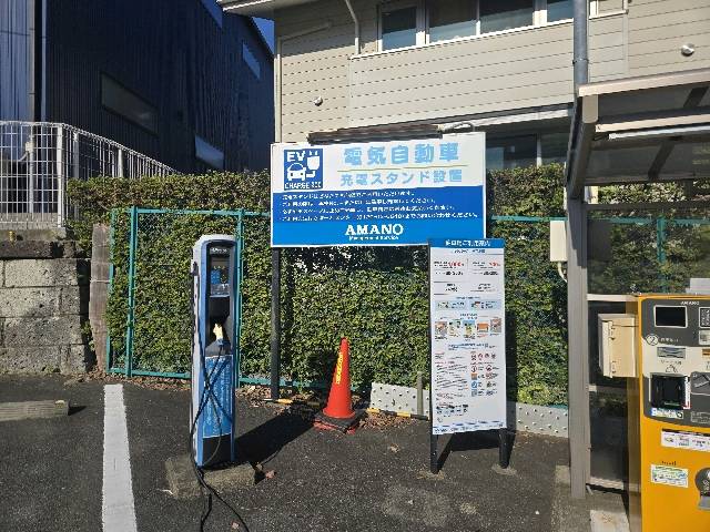 (株)豊田自動織機(日東工業(株) 製)3.2kW器です。充電は無料です。駐車料金は昼間(8-20時)最大1200円、30分200円です。