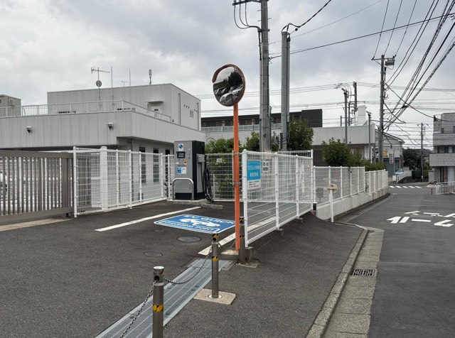 【24h使用出来ません】←情報修正願います JFEテクノス製50kW器です。eMP加入カードでは使えず、トヨタの充電カードorビジターでの充電になります。販社敷地北側、路地を入りショールーム裏に設置されてます。※24時間使用出来る表記ですが、営業時間外は充電器前チェーンで封鎖されており使用出来ませんでした。
