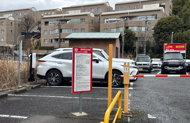 たまプラーザ駅から徒歩5分 駐車場料金は最大1500円と少し高めだが、6kW充電なら日中の停めておいておけば夕方には満充電で満足