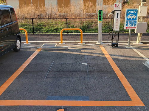 2台分の駐車スペースがあります。 付近に商業施設はありませんが、すぐ近くに神鳥前川神社という神社があり、充電中に参拝も出来ます。