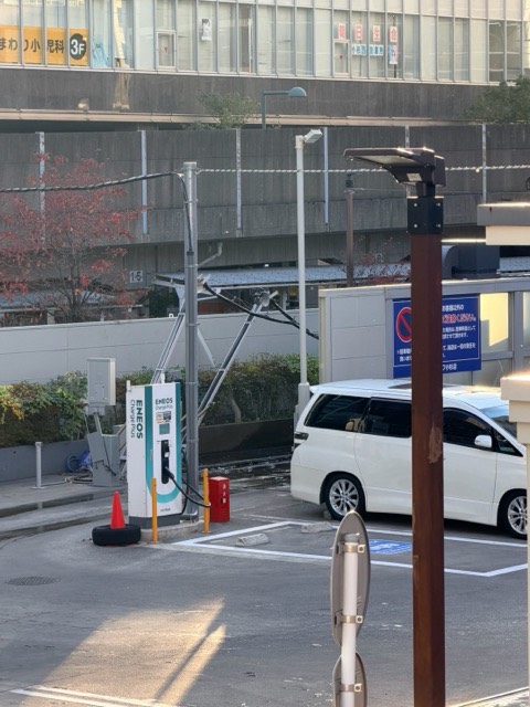 駅前にしては最大料金もあり良心的ではあると思います。 ただ、立地故に満車になることは多いらしく、充電できる1番に停まってる可能性は高いです。 リーフ等の充電口がフロント側にある車両や、車両左後方に充電口のある車両に関しては2番の駐車スペースでもコードは届く(前向き駐車する必要あり)ので、チャレンジする勝ちはあると思います。(左後方に充電口のある私の車では諦めました…(泣))