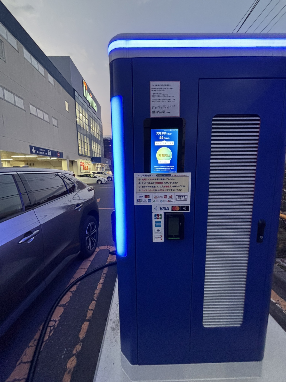 について 充電有料。 クレジットカード決済または二次元コード決済 kWh従量課金制(44円/kWh) 充電終了後に決済をせずに3分経過すると1分あたり100円加算。