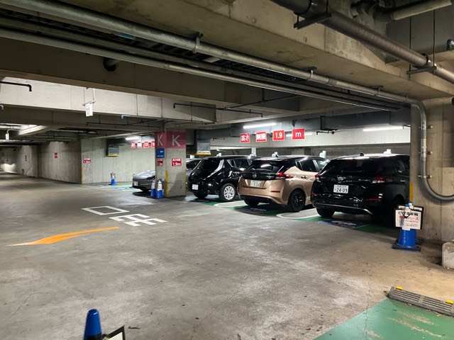 急速充電器は地下駐車場のエリアJ、普通充電器はエリアKにあります。 正月3が日の昼食時間帯に行きましたが、普通充電器は空きがありました。 なお、急速充電器は相変わらず故障中で使えません。