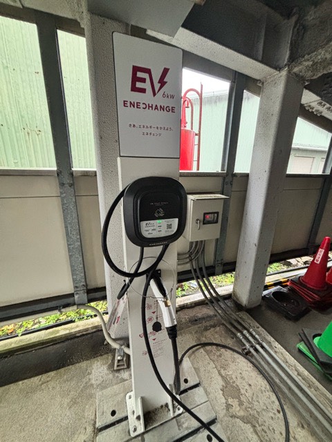 ENECHANGE6kW器です。コーンとバーがあるのでガソリン車駐車はなかったです。