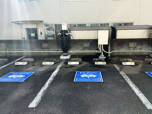 設置場所:第1駐車場の左奥にEV充電器があります。 最大出力6kW