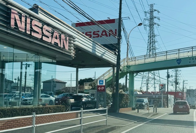 ニチコン製50kW器です。販社敷地入り正面奥に設置されてます。充電後転回する場合、ショールーム前の柱に要注意です。ベコベコでした。