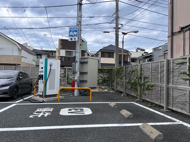 ABB製90kW器2口です。隣の日産より高出力です。充電器から建物すぐに御手洗いもあり便利です。