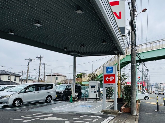 新電元工業(株)90kW充電器です。敷地入ってすぐ右手に設置されてます。町田藤沢線沿いに設置されてます。