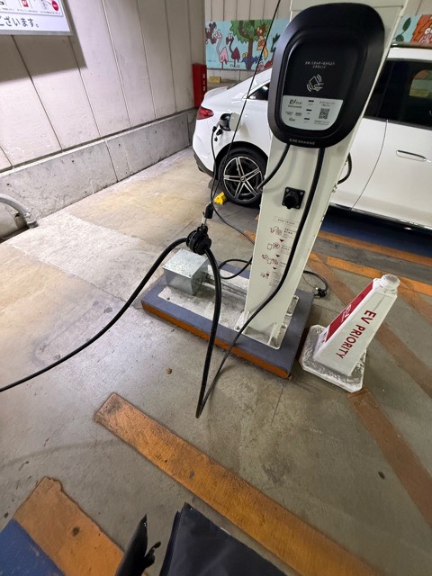 地下駐車場の奥側に設置されています。 ガンは1つですが駐車スペースは2台分あります。 撮影時はガソリン車が停まっていました。 EV専用のマークは特になく、寧ろ満車時はこちらをご利用くださいと記載されているパイロンまである始末。 EVに対しての優先度はかなり低いと思われます。 他の方も口コミされている内容を見ると、管理者の怠慢だと思います。 EV専用マスに出来ない、ガソリン車を停めない様に対策出来ないなら店を畳んでも良いレベルで皆迷惑してます。 早急に対策を求めます。 ちなみに決済方法はsmart oasisです。 ダイナシティイーストに設置されているパターンと同じです。 小田原市にある急速充電器の中では一番安いですが、駐車料金がかかるので、あまりお得に感じないかもしれないです。
