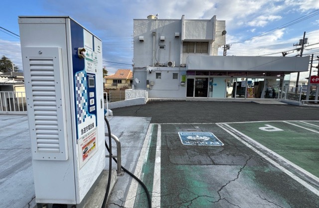 (株)豊田自動織機製3.2kW器です。店舗敷地入りすぐ右手R1沿いに設置されてます。営業時間内で使用可能です。