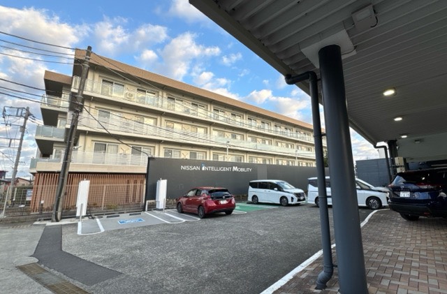 日産製44kW器です。販社敷地入りすぐ右手、エントランス屋根下に設置されてます。営業時間内で使用可能です。