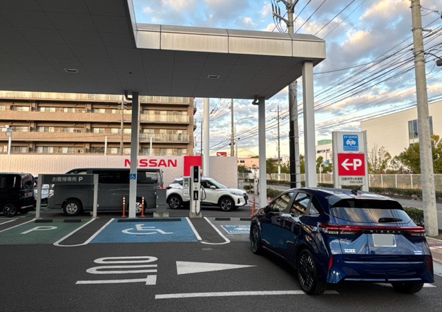 近くの日産が定休日で解放されていなかったため、こちらを利用させてもらいました。日産店には残念だったが、こちらは90kW!かえって良かったです。