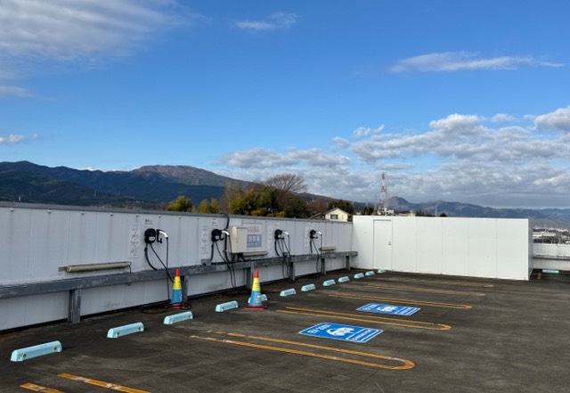 年中無休 設置場所:平面第6駐車場 90kWの充電器が1基(2台同時に充電可)あります。 ★データチームより★ 最大出力90kWは、お車が対応しており、かつ1台で充電した場合の参考値です。