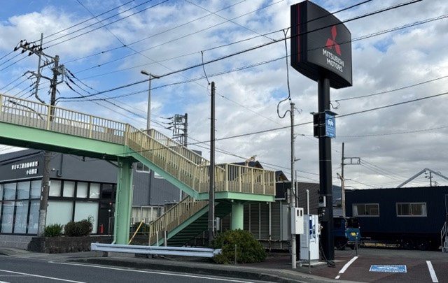(株)東光高岳製50kW器です。ショールームからは少し離れた南側敷地に設置されてます。目標は三菱の看板と歩道橋で、R255沿いです。