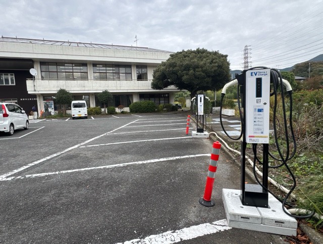 日東工業(株)製Terra Charge認証6kW充電器2器×2口で合計4口です。駐車場入りすぐ右手に設置されてます。充電する車両専用枠ではないのでガソリン車の駐車の場合有りです。