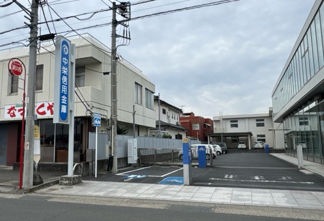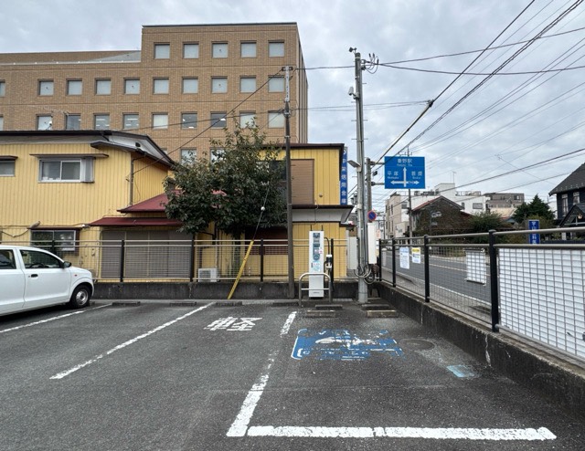 駅方面から見て一番奥にあります 6kWなので昼間の駐車料金(200円/時間)でもそこらへんの有料充電器より50%以上安く充電可能!