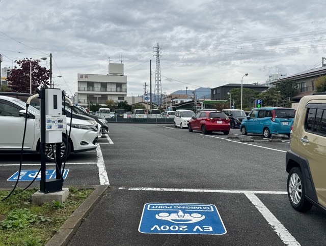 建物敷地内にあるTerra Charge(日東工業(株)製6kW)充電器1器×2口で合計2口です。充電する車両専用枠ではないのでガソリン車の駐車の場合有りです。