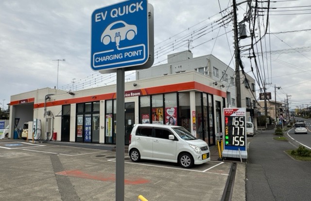 ニチコン製50kW器です。EneKey、eMP加入カード、nanaco、WAON等で充電出来ます。GS敷地のサンライフ入口交差点側角に設置されてます。